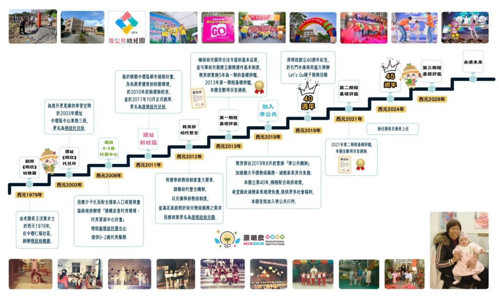 原明欣於民國 68 年創立,辦理幼教事業已有 40 餘年, 本著幼吾幼以及人之幼的精神服務家長, 共築孩子們的第二個家,用心呵護每個心肝寶貝長大。